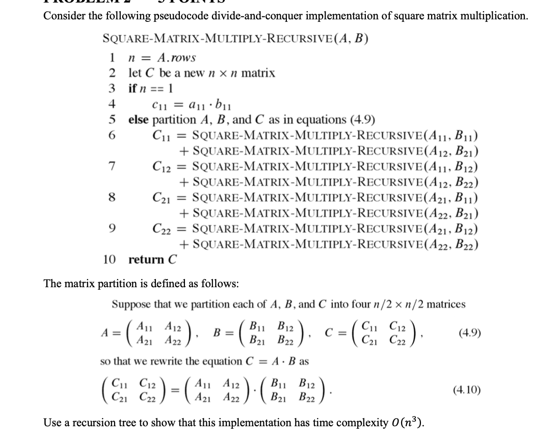 Matrix Multiplication Using Divide And Conquer Time Complexity Stack Overflow